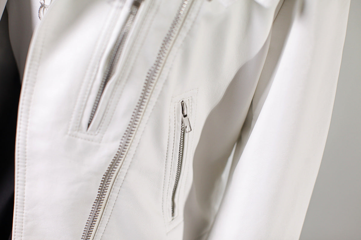 Chic European-Style PU Leather Motorcycle Jacket for Women